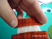 Whip stitch one end of the side fabric to the batting roll. Wrap the fabric around the roll, folding under 1/4 inch at the unattached end.